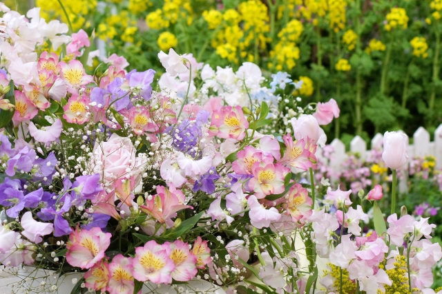 野生の花もある中で、人間の手によって上品なお花が咲き誇っている感じ。
