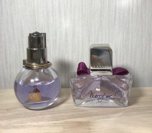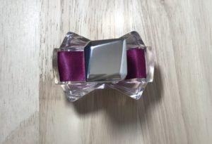 薄い赤紫色の香水で、赤紫色のリボンが可愛いけれど、なんだか上品さもある。