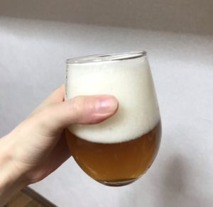 シメイホワイトは、ピルスナービールのような黄金の色味。泡立ちも良い。