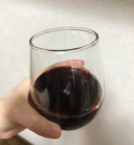 グラスに注ぐと、とても濃い赤色。あんまり透明感はなく、濃い赤ワインだな、という印象。